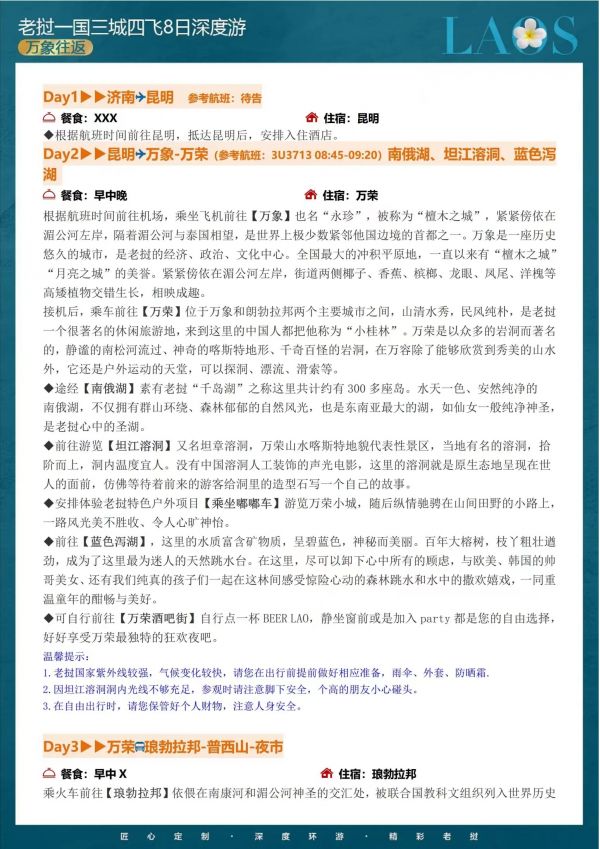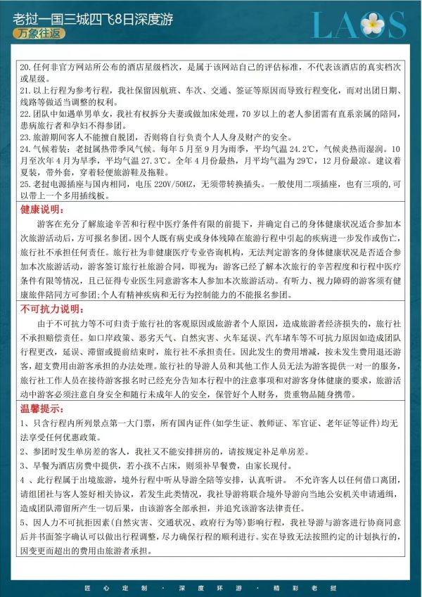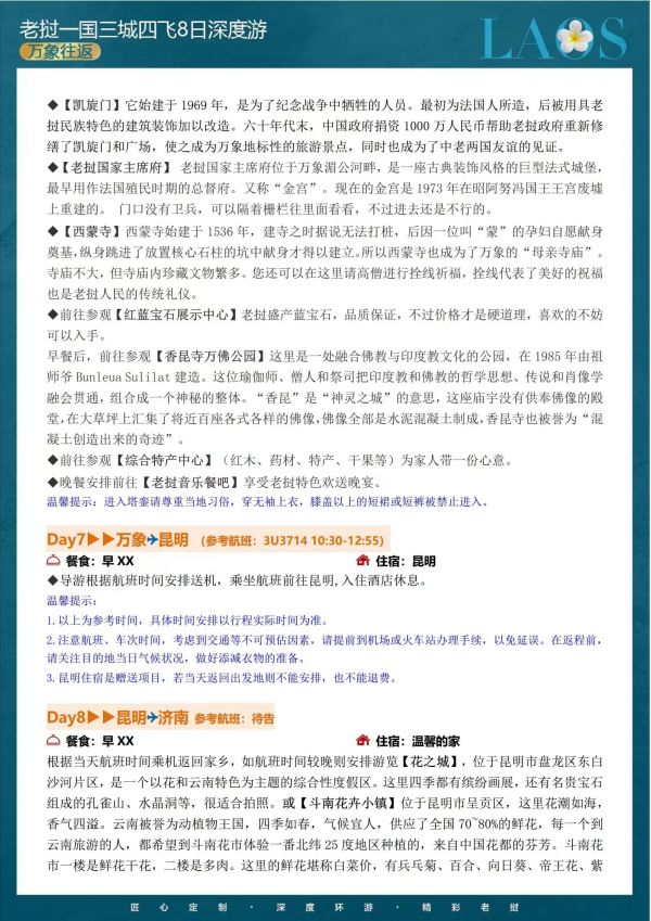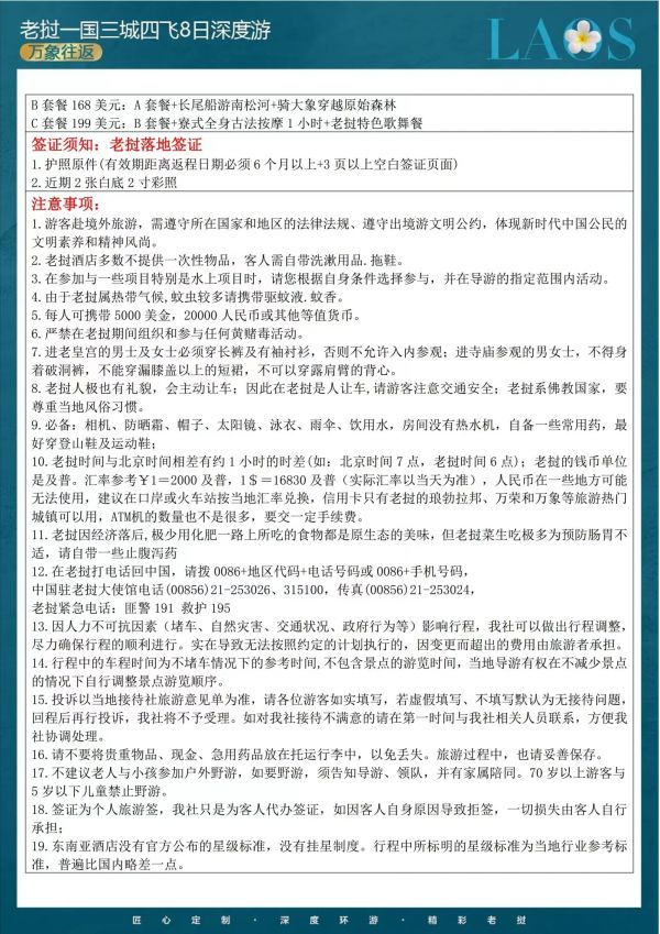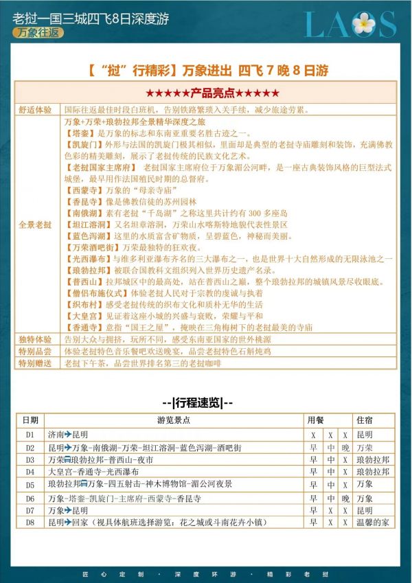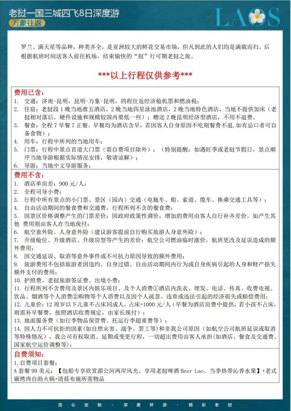 老撾四飛8日游 聊城發(fā)團(tuán) 純玩 無購物 大皇宮 光西瀑布 坦江溶洞 藍(lán)色瀉湖 凱旋門 價格 4380 4680 報名電話 0635 8681234