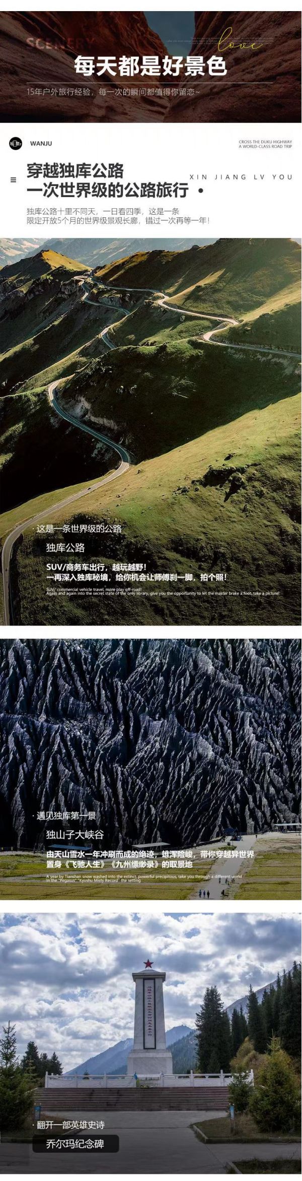 早餐后今日就踏上了傳說中一日能看到四季的【獨(dú)庫公路】,獨(dú)庫公路宛如一條巨龍盤臥天山。這條全長(zhǎng)561公里、連接南北疆的公路,橫亙崇山峻嶺、穿越深山峽谷,貫通了南北疆,堪稱是中國(guó)公路建設(shè)史上的一座豐碑。沿途風(fēng)景只能用神奇來形容,途可欣賞神秘險(xiǎn)峻的峽谷風(fēng)景,天山腹地茂密的植被和游牧風(fēng)情及浩瀚的草原景色。經(jīng)喬爾瑪前往唐布拉,游覽【唐布拉百里畫廊】她是原生態(tài)的,是純粹的,也是純凈的。在眾美之中,有這樣一處還未被開發(fā),深藏閨中的風(fēng)景,宛如私藏的秘境,當(dāng)你撩開它的面紗,你會(huì)慢慢沉醉其間,為之傾倒,最后迷戀上它?!締虪柆敻锩沂苛陥@】,喬爾瑪革命烈士陵園位于天山深處217國(guó)道旁的新疆伊犁州尼勒克縣喬爾瑪。是為了紀(jì)念為了修建天山獨(dú)庫公路而犧牲并安葬在這里的168名革命烈士而建的國(guó)家革命烈士陵園。