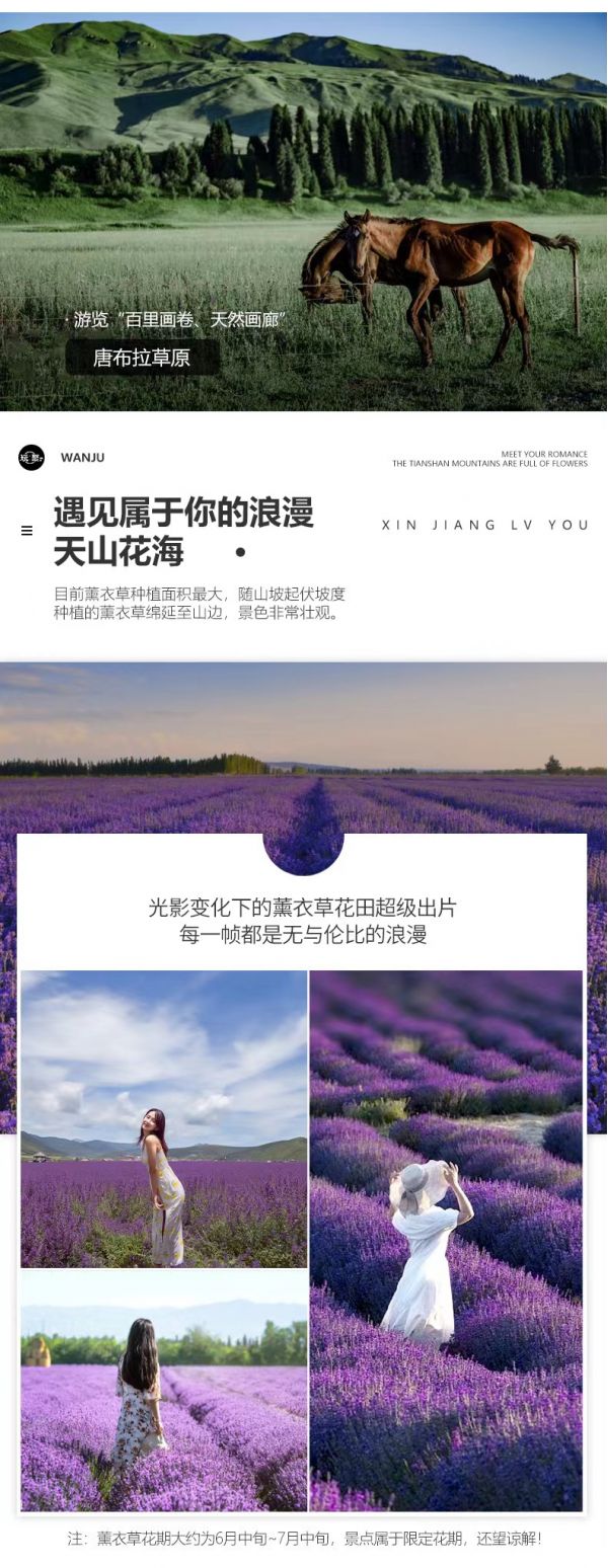 1、花期大約集中在6月中旬~7月中旬,其余時(shí)間無法看到大片花海,還望諒解。