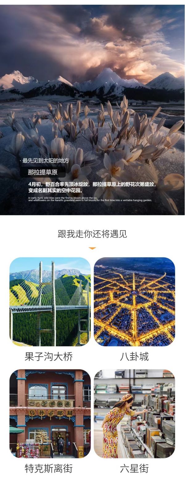 用完早餐后,前往【賽里木湖景區(qū)】,是新疆境內(nèi)面積最大的高山內(nèi)陸湖泊,又是大西洋暖濕氣流最后眷顧的地方,因此有“大西洋最后一滴眼淚”的說法。賽里木湖集雄奇、秀麗、壯闊于一身,一年四季都能看到不一樣的美景。春天冰雪融化,春暖花開;夏天草長(zhǎng)鶯飛,花海如潮;秋天天高地闊,蒼茫唯美;冬天千里冰封,萬里雪飄,清代著名學(xué)者洪吉亮將其贊嘆為“西來之異境,世外之靈囊”。沿著湖邊的公路一路向前,每個(gè)??康恼军c(diǎn)都不容錯(cuò)過??死沼恐椋吧蠲赖牡胤?,也是婚紗攝影的勝地;成吉思汗點(diǎn)將臺(tái)是攝影愛好者的天堂,在這里可以一覽賽里木湖全景;五月中旬到七月初的海西,滿山遍野的野花;公路照、湖泊照、雪山照隨意一拍都是你想要的大片。拍夠了便乘車?yán)^續(xù)繞湖前行。愛好徒步者可沿著木棧道在湖邊漫步。乘車前往清水河,穿越有著“伊犁第一景”的果子溝,跨越雄偉壯觀的果子溝大橋,探尋天山腹地美景。果子溝是伊犁地區(qū)的天然門戶,北上賽里木湖,南下伊犁河谷,自古以來就是進(jìn)出伊犁地區(qū)的重要通道。【六星街】,這可是出文藝片的地方,它是伊寧市的一個(gè)古老街區(qū),始建于上世紀(jì)30年代中期(1934-1936年),像蜘蛛網(wǎng)格一樣,也是俄羅斯族人聚居的地方,建筑風(fēng)格也具有獨(dú)特的俄羅斯風(fēng)情。漫步在街道上沿街拍攝各種風(fēng)格、各種顏色的小院和建筑,感受當(dāng)?shù)鼐用褓|(zhì)樸的生活。
