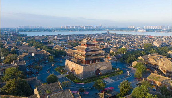 即東昌古城,也稱聊城古城,面積僅有1平方公里,卻被6.3平方公里的湖水包圍,其“城中有水、水中有城、城水一體、交相輝映”的水城風(fēng)貌美侖美奐,天圓地方的城市形態(tài)全球獨有。古城坐落在聊城市區(qū)內(nèi)東昌湖中間,北宋時期的城垣。城呈正方形,總面積約100萬平方米。城墻始建于宋熙寧三年(1070),初為土城。明洪武五年(1372),東昌平山衛(wèi)指揮僉事陳鏞改筑為磚城。城墻周長3.5千米,高11.7米,頂寬6.7米,基厚11.7米。內(nèi)墻用三合土夯筑,外墻用磚石砌壘。城設(shè)4門,上筑門樓,外設(shè)甕城。南、東、西甕城為扭頭門,南門東向似鳳頭,東、西門南向似鳳翅,北門北向似鳳尾,故名“鳳凰城”。四城門樓皆重檐歇山,四角飛翹,東曰“春熙”,西曰“清遠”,南曰“正德”,北曰“宣武”。明萬歷七年(1579),城墻上又建垛口2700余個、敵樓27座;4城門樓更名,東曰“寅賓”,西曰“納日”,南曰“南熏”,北曰“鎖鑰”。各個城門均有水門、吊橋。城東北角、西北角原有“望岳”“綠云”2樓。城高大堅固,易守難攻,大有高屋建瓴、睥睨四鄰之勢,又有“能陷不失的鳳凰城”之說。