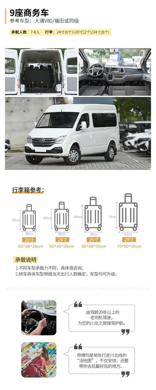 服務(wù):司機(jī)兼向?qū)В唬ㄋ緳C(jī)不進(jìn)景區(qū))