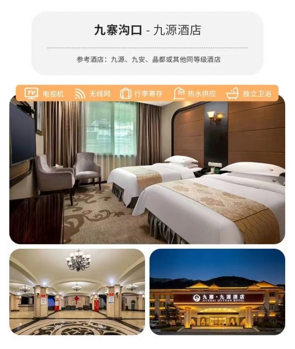 九寨溝口:九源酒店、九安賓館、晶都或其他同級別