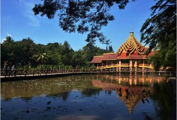 后游覽【原始森林公園】(含門票,自理觀光電瓶車60元/人)位于景洪市東部,瀾滄江以北,是一片原始森林。公園內(nèi)代步工具是游覽車,主要景點(diǎn)有孔雀山莊,當(dāng)馴養(yǎng)員一聲哨響,上百只孔雀越過(guò)波光粼粼的湖面,場(chǎng)面非常震撼。另外兩站是愛(ài)伲山寨和民族風(fēng)情演藝場(chǎng),既可以觀看民族歌舞表演,也可以參加小型潑水節(jié),很有民族風(fēng)情。后游覽【曼聽公園】(含門票)位于云南省景洪市東南,是個(gè)天然的村寨式公園,也是西雙版納歷史悠久的城市公園。旅行者在曼聽公園可以去藤本植物區(qū)、孔雀園看看動(dòng)植物,也可以參觀頗具風(fēng)情的傣族和泰國(guó)式建筑。隨后游覽【西雙版納總佛寺】是西雙版納佛教信徒拜佛的中心,來(lái)此參拜的信徒絡(luò)繹不絕。總佛寺建筑大氣雄偉,一角一處都各不相同,雕刻精美的梁柱,讓人看著都是一種享受。游客可以先在外面欣賞精美大氣的建筑物,如果有時(shí)間的話可以走近寺內(nèi),去接受佛教的洗禮,安靜地放空自己,聆聽自然的聲音??偡鹚麓稣Z(yǔ)稱為“洼巴潔”,是西雙版納佛教信徒朝圣的中心,解放以前是西雙版納地區(qū)高統(tǒng)治者及其土司頭人拜佛的名地,也是西雙版納等級(jí)較高的佛寺。晚上可自費(fèi)觀看曼聽篝火晚會(huì)或勐巴拉納西/夜游船280元/人。