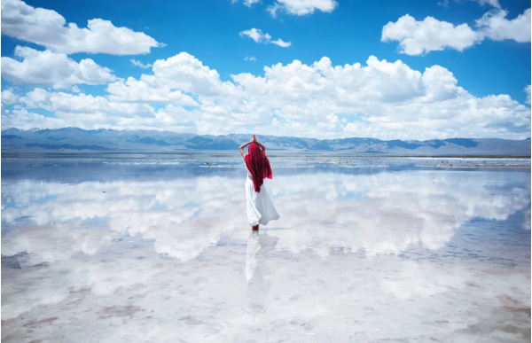 結(jié)晶之上是一層薄薄的鹵水,將天空、云朵和對岸的山都倒映在白色的湖里,非常漂亮,所以也被稱為“中國的天空之境”??梢猿俗皡^(qū)內(nèi)的小火車前往景區(qū)深處游玩,如果不乘坐小火車,也可以沿著鐵軌向湖深處散散步拍拍照片也是非常愜意。