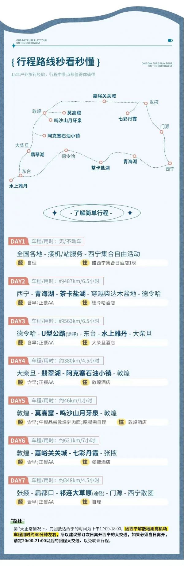 集合時(shí)間:以出團(tuán)通知為準(zhǔn)接機(jī)/站服務(wù):本次活動提供西寧市內(nèi)24小時(shí)接機(jī)/接站服務(wù),工作人員會在您出發(fā)日期前一天21:30之前向您推送消息并與您聯(lián)系,如果超過時(shí)間沒有接到任何通知,請及時(shí)與報(bào)名處聯(lián)系。(接站等待時(shí)間一般為15-20分鐘,最長不超30分鐘,節(jié)假日拼單人數(shù)較多情況下客人等待時(shí)間可能會延長)。