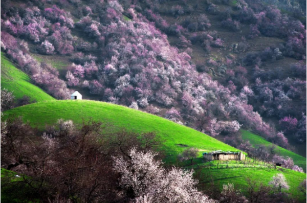 春天來了。桃花,梨花,櫻花,杏花,油菜花都開了。白的似雪,粉的像霞,黃的賽金??諝饫锒纪钢还商鹣?。