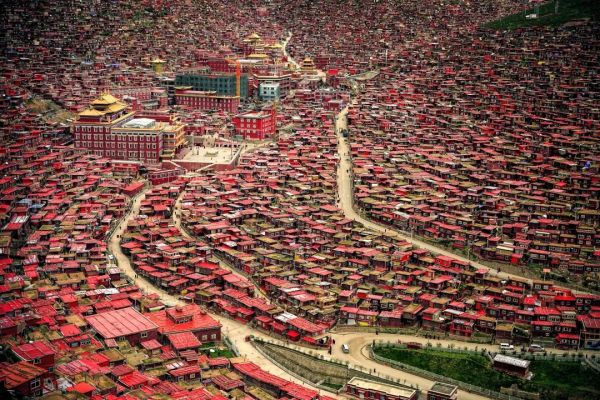 ? 震撼的佛國(guó)畫(huà)卷逐漸展開(kāi)--入目處盡是朱紅的佛色,裹著紅袍的僧人在其間穿行,空氣里彌漫著佛香。在金紅相間的佛學(xué)院漫步,學(xué)著僧人面目虔誠(chéng)地轉(zhuǎn)經(jīng)、朝拜,在觸動(dòng)轉(zhuǎn)經(jīng)筒的旋轉(zhuǎn)中,感受“信仰”的具象化。