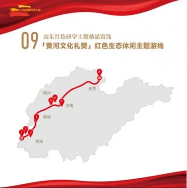 黃河文化是中華文化的重要組成部分,是中華民族的根和魂。山東沿黃9市文旅資源高度富集、紅色文化底蘊深厚、精神標識作用突出。沿著這條集歷史文化、自然風(fēng)光、紅色教育于一體的精品旅游線路,您將感受菏澤市冀魯豫黃河水利委員會舊址、聊城市劉鄧大軍強渡黃河戰(zhàn)役紀念園、德州市齊河黃河水鄉(xiāng)國家濕地公園、濟南黃河文化展館等景點串聯(lián)起的紅色記憶,感悟新時代黃河文化地標背后厚重的紅色基因。