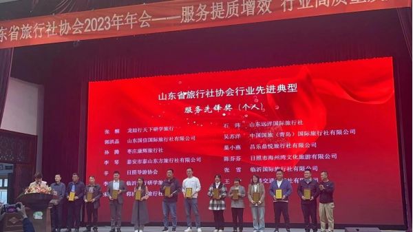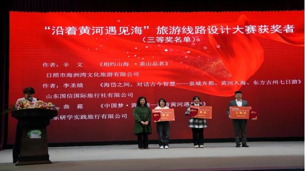 會上,對榮獲2023年度山東省旅行社行業(yè)先進(jìn)典型的107家單位和個人予以表彰,對山東省“沿著黃河遇見?!甭糜尉€路產(chǎn)品設(shè)計大賽獲獎?wù)哂枰宰C書和現(xiàn)金獎勵。