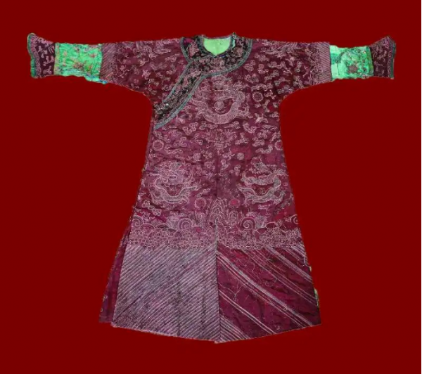 此件清代袍服以綢為地,采用刺繡傳統(tǒng)技法平金繡,個別紋樣在金線上以彩色絲線施繡,是山東大學創(chuàng)辦歷程的珍貴實物。