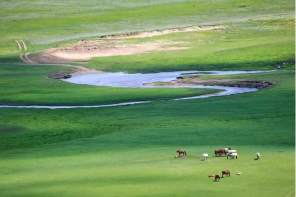 牛羊點綴在無垠的綠毯上,