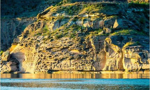 黃河畫廊,位于晉陜黃河大峽谷磧口段,是砂巖石經(jīng)過多年黃河水沖刷、風(fēng)化、自然形成的浮雕壁畫。乘坐游艇到黃河中才能看到"浮雕"。此處參觀2小時。