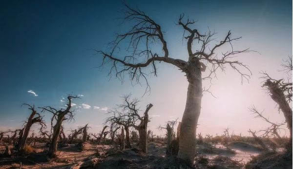 隨后我們驅(qū)車前往【黑城怪樹林】,游覽約一小時【怪樹林】,這里幾十年前是一片原始森林,由于水源不足等自然因素,大面積的胡楊樹木枯死。如今,枯木東倒西歪,神態(tài)各異,因此當?shù)厝朔Q之為怪樹林。我們將在怪樹林欣賞大漠落日,看滾滾落日從地平線上姍姍落下,形態(tài)各異的枯枝在大漠上畫出蜿蜒的影子。