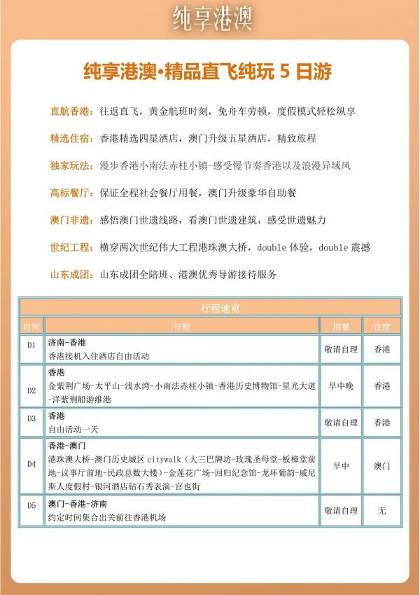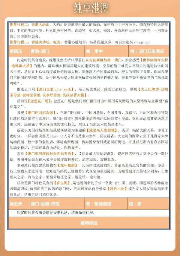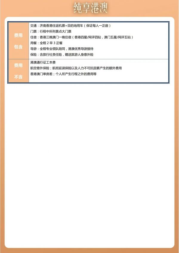 溫馨提示:請(qǐng)攜帶港澳通行證需在有效期內(nèi),本人身份證 (兒童如無(wú)身份證請(qǐng)帶好戶口本或出生證明) ,智能手機(jī),客人自行帶好港澳通行證及其他有效出行含有效簽注證件,如因客人沒(méi)有證件/無(wú)簽注。造成無(wú)法登機(jī)產(chǎn)生損失客人自行承擔(dān),個(gè)人原因無(wú)法出行機(jī)票不退任何費(fèi)用!澳門(mén)酒店一經(jīng)確認(rèn)不能取消或更改!入境小貼士----請(qǐng)準(zhǔn)備: