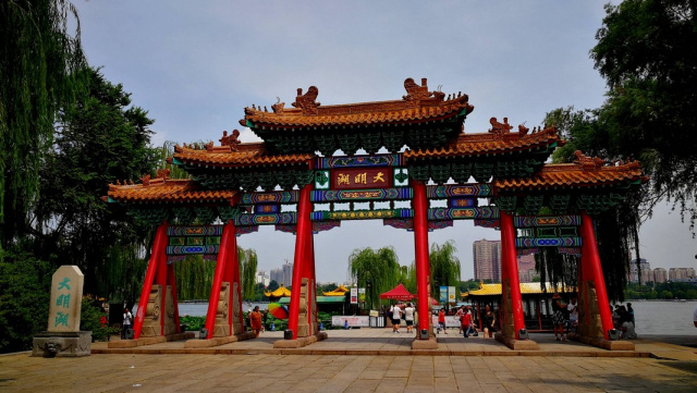 后前往大明湖,自由游覽。大明湖,山東省濟(jì)南市區(qū)湖泊、濟(jì)南三大歷史名勝之一。位于山東省濟(jì)南市歷下區(qū)舊城區(qū)北部,是由濟(jì)南眾多泉水匯流而成,湖水經(jīng)濼水河注入小清河。湖水面積46公頃,水深平均2~3米。大明湖景色優(yōu)美秀麗,湖水水色澄碧,是國家5A級旅游景區(qū)——天下第一泉風(fēng)景區(qū)的核心組成部分之一。大明湖歷史悠久,紀(jì)念古人政績、行蹤的建筑以及自然景觀很多,諸如歷下亭、鐵公祠、小滄浪、北極閣、匯波樓、南豐祠、遐園、稼軒祠等,引得歷代文人前來憑吊、吟詠。唐代以后的歷代詩人,都留下了著名的詩篇。
