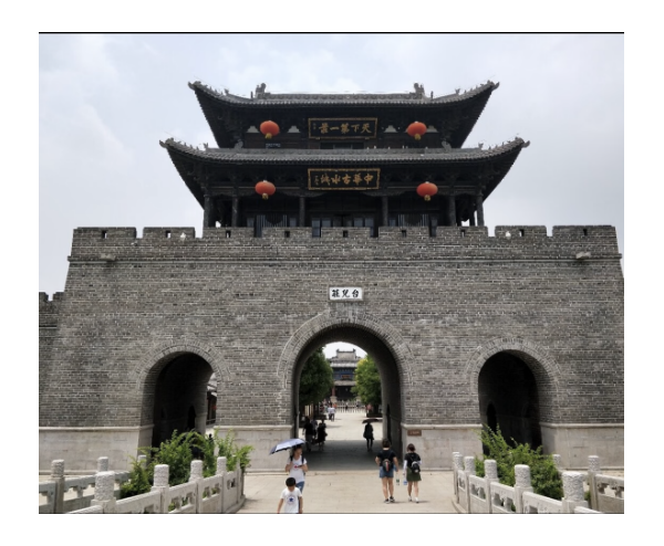 的主題景區(qū)。面前這座雄偉的城門樓上赫然懸掛著兩塊金宇牌區(qū),最上面的“天下第一莊”,由清代的乾隆皇帝題寫,下面的“中華古水城”由我國著名書法家歐陽中石題寫。