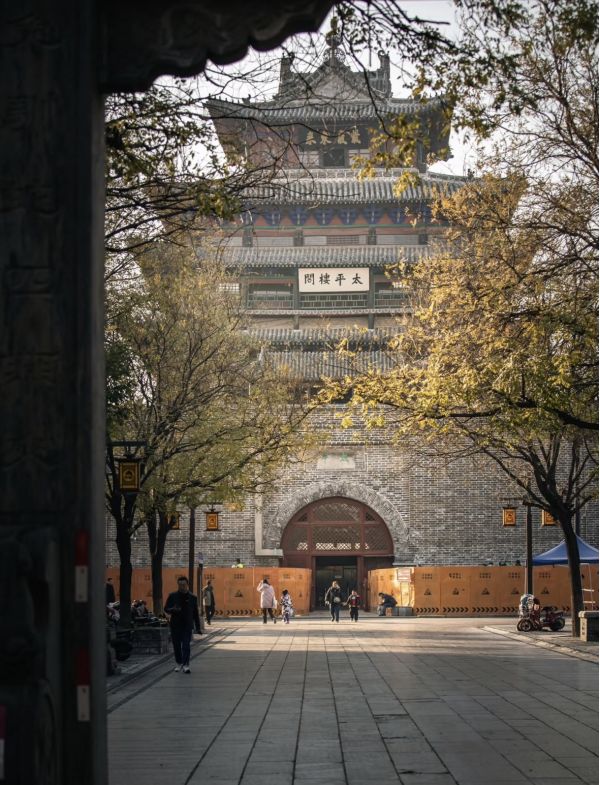 ? 外觀布局:外觀為四重檐歇山十字脊過街式樓閣,由墩石和主樓兩部分組成,通高和四邊長都是33米,即古代的九丈九尺,有不可超越之意。