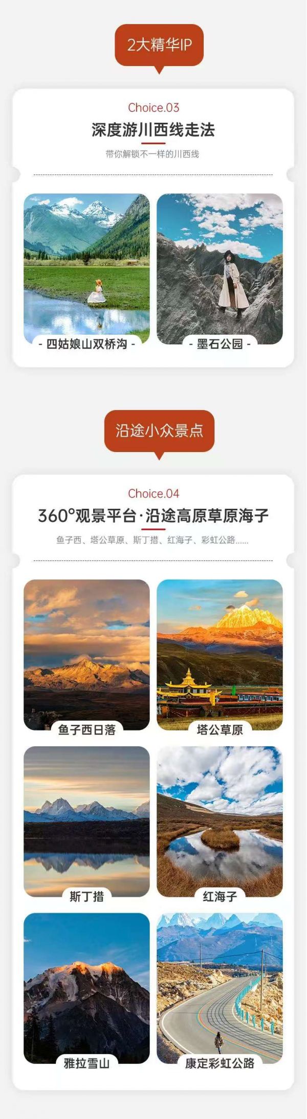 隨后前往【魚子西】在這里你可以感受日照金山的壯闊, 也可以和雅拉雪山來一次近距離的合影,還可以遠(yuǎn)眺貢嘎雪山和云海。夜深了,還能看到肉眼可見的星空和銀河。游覽結(jié)束后經(jīng)塔公草原返回新都橋——被譽為“攝影家的天堂”,又被稱為東俄洛,光影變化極其美麗。游覽結(jié)束后經(jīng)塔公草原返回新都橋——被譽為“攝影家的天堂”,又被稱為東俄洛,光影變化極其美麗。
