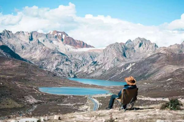 離開(kāi)措普溝,途徑海子山姊妹湖。姊妹湖由兩個(gè)相連的湖泊組成,湖水湛藍(lán)清澈,宛如兩顆璀璨的明珠鑲嵌在雪山腳下。站在觀景臺(tái)上,可俯瞰到姊妹湖的全貌,周?chē)沁B綿的雪山和廣袤的草原,景色壯美。在此拍照留念,記錄下這令人震撼的美景。