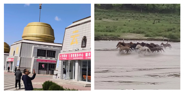 5 月 24 日下午,我們先乘汽車到新鄉(xiāng)東站,又轉(zhuǎn)乘高鐵抵至石家莊站,中轉(zhuǎn)換乘綠皮硬臥奔赴赤峰。幾經(jīng)輾轉(zhuǎn),一路北上,于 25 日清晨抵達(dá)赤峰南站。提前在此等候的專車又將我們接到赤峰博物館廣場,與山東省旅行社協(xié)會副會長、聊城市精品旅游促進(jìn)會旅行社專委會會長、聊城市旅行社協(xié)會會長、山東聊城聊之旅國際旅行社有限公司董事長劉寶平以及來自全國各地的 150 多位旅行商順利集結(jié)。配合克旗文旅集團(tuán)完成宣傳視頻的錄制后,車隊駛離市區(qū),“玩轉(zhuǎn)克什克騰、暢享草原風(fēng)情”的踩線活動就此拉開帷幕。