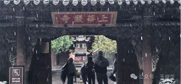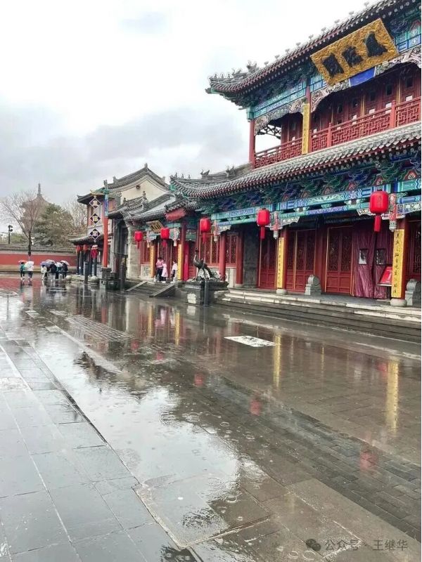 再冒驟雨、裹著7℃寒氣奔向華嚴(yán)寺時,朱紅山門正蒸騰著朦朧水霧。檐角銅鈴在風(fēng)雨中低吟,將千年古剎的莊嚴(yán)揉進(jìn)濕潤的空氣里,腳下青石板積著水洼,倒映著大雄寶殿的飛檐斗拱,恰似把整座寺院裝進(jìn)了鏡面,恍惚間不知是在人間還是鏡中。