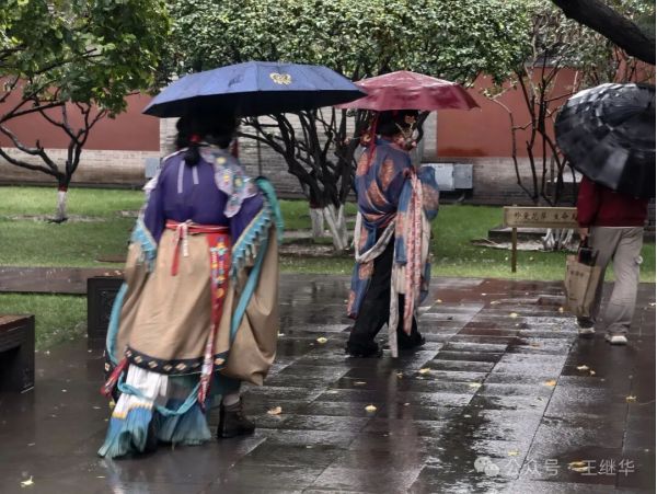 唐裝早已被雨浸透,貼在身上該有多涼?為了美,真真是拼了。看著她們的身影融入斑駁光影,忽然覺得這場雨來得恰好:是寒雨讓古寺更顯沉靜,也是那些不懼風(fēng)雨的身影,讓千年華嚴(yán)寺的秋日多了段生動注腳,只是這生動里藏著我無法理解的執(zhí)著,倒比身上的寒意更讓人悵然。