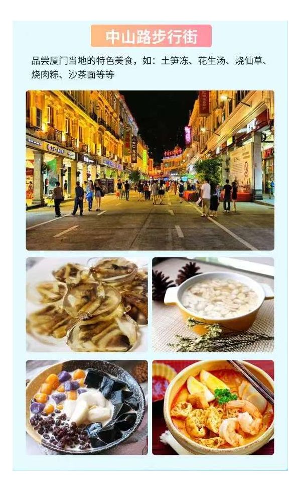 推薦廈門自由活動:中山路、曾厝垵、環(huán)島路等。