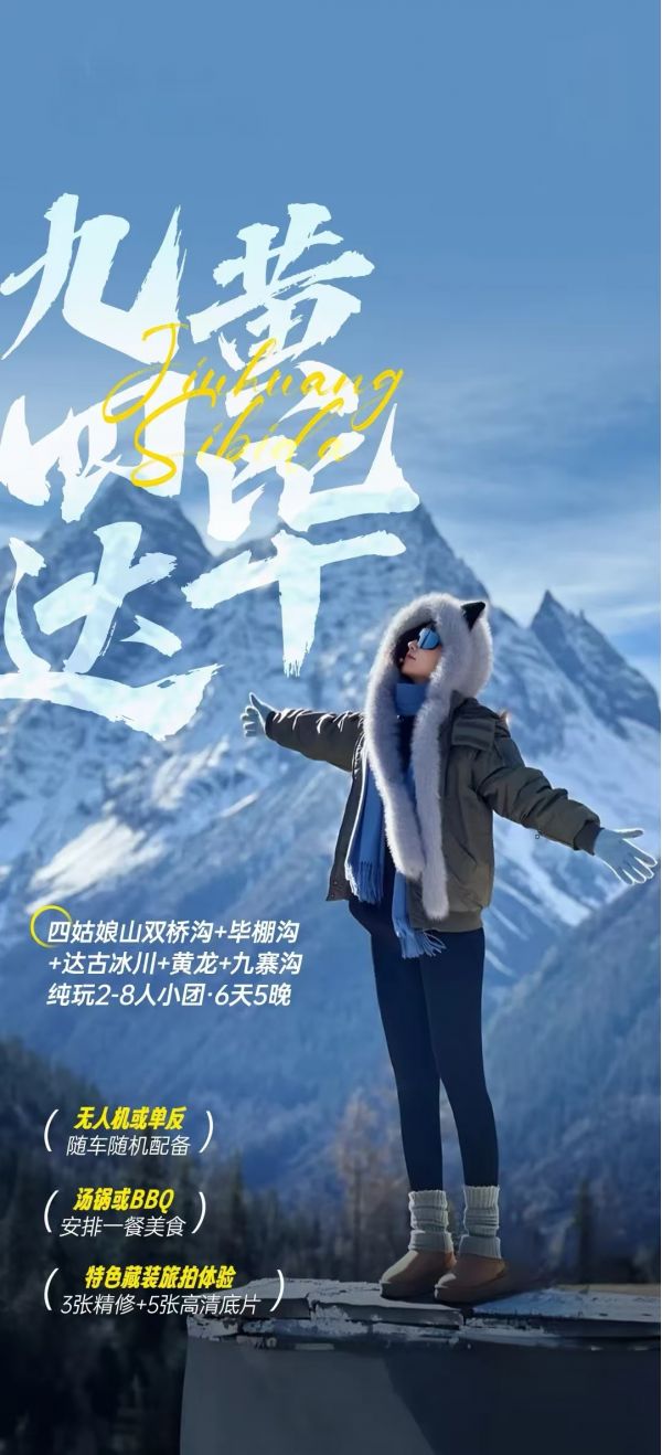 從都江堰出發(fā),前往四姑娘山雙橋溝。雙橋溝內(nèi)風(fēng)景如畫,有雄偉的雪山、幽深的峽谷、清澈的溪流和茂密的森林。乘坐觀光車深入景區(qū),沿途可以欣賞到各種美麗的自然風(fēng)光。您可以在觀景臺(tái)下車,拍照留念,也可以徒步探索,感受大自然的寧?kù)o與美麗。游覽完雙橋溝后,返回成都散團(tuán),結(jié)束這段難忘的旅程。在這六天的時(shí)間里,您領(lǐng)略了四川的自然風(fēng)光和人文魅力,帶著滿滿的回憶和收獲,踏上歸程?;氐搅某菧嘏募?。