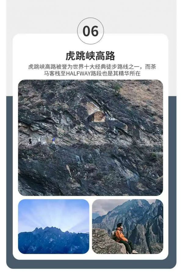 早晨,從麗江乘車出發(fā),約1.5小時抵達虎跳峽鎮(zhèn),進入景區(qū)后乘車前往茶馬客棧開始一天的徒步之旅。