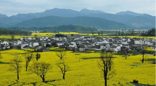 走進徽州,仿如步入油菜花的天堂,金黃綢帶是一條引向油菜花天堂的路。