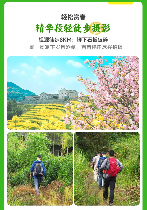 隨后領隊將帶領大家從【石潭】徒步至【新安江】(全程約5Km,難度較低),新安江山水畫廊沿江游步道,清江綠水清幽幽,兩岸青山排垯,金黃的油菜花撲滿岸堤,古老粉墻黛瓦徽派村落散步其中。感受“人行明鏡中,鳥度屏風里”的絕妙意境!