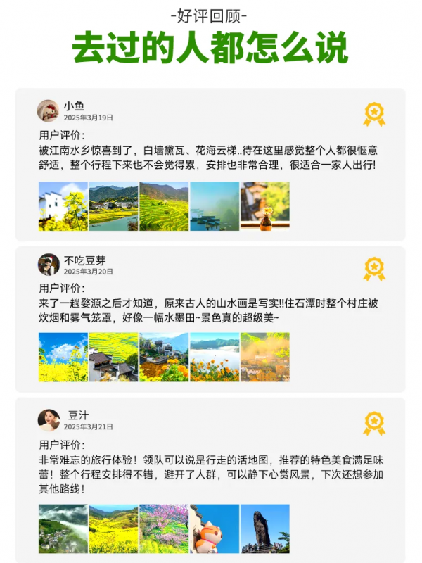 行程結束當天預計15:30點抵達黃山北站解散,前往黃山屯溪機場可打車(用時約25分鐘),火車/高鐵建議購買16:30以后的車次!飛機建議買16:30以后的航班。