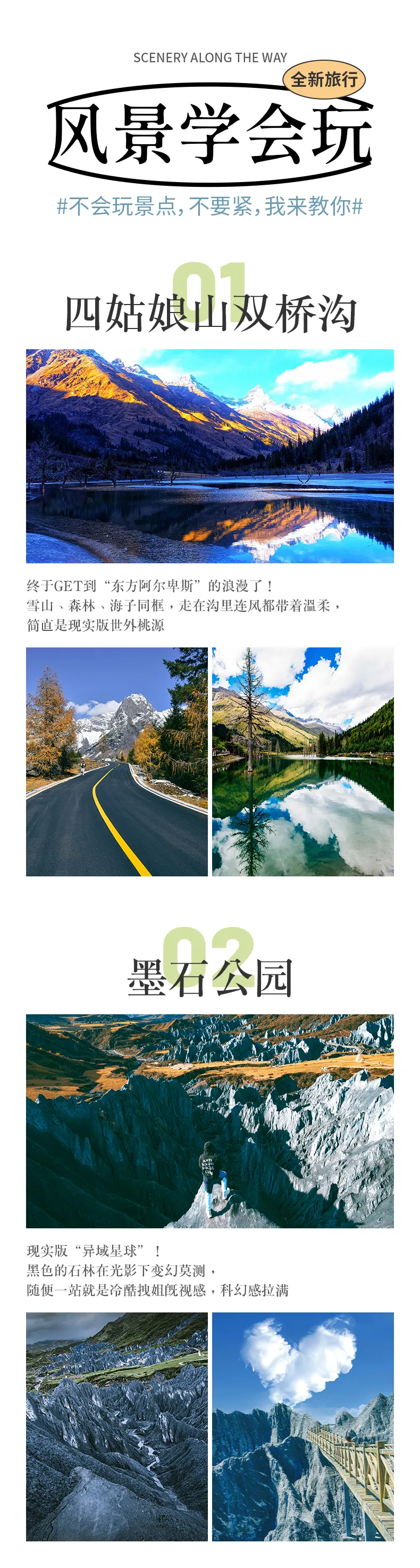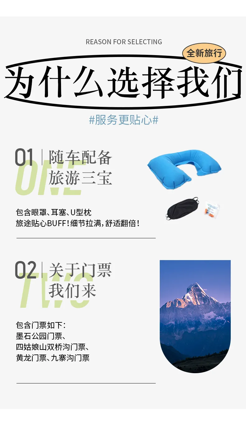 包含墨石公園門(mén)票、四姑娘山雙橋溝門(mén)票、黃龍門(mén)票、九寨溝門(mén)票