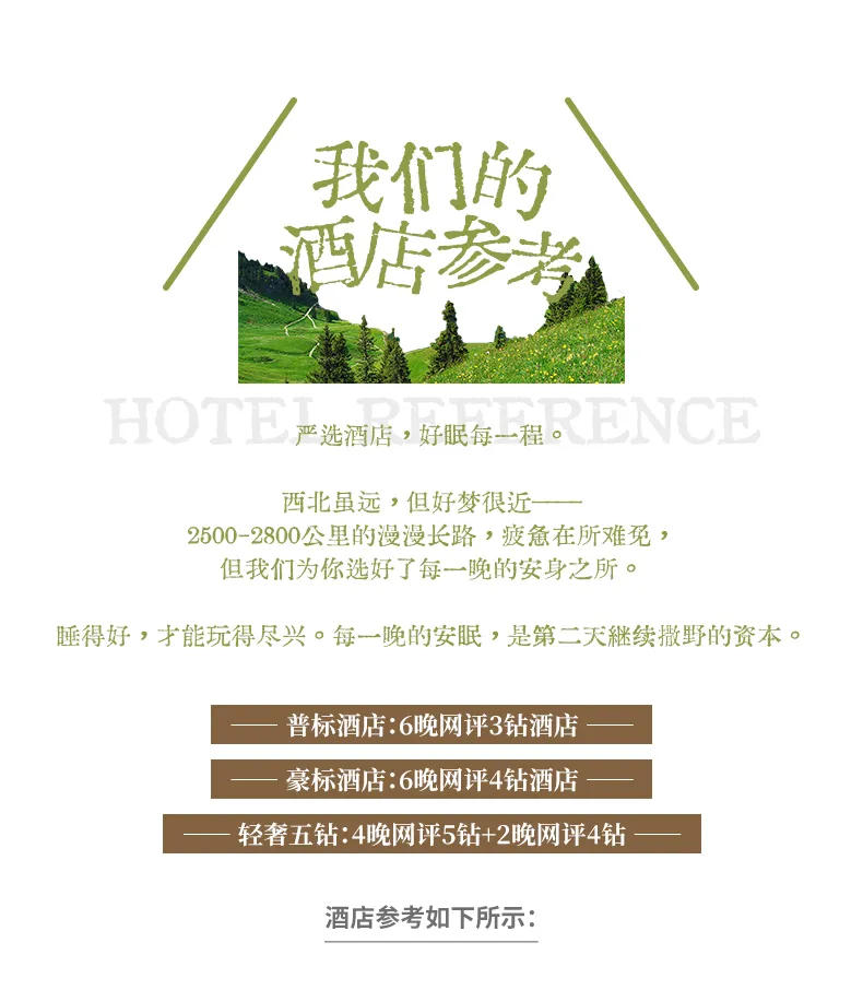 (6)對于住宿有特殊要求的隊員,請在報名時告知客服(要求全程一個人住宿,大床房,三人間等等),在報名時確定費用,上團后臨時修改住宿,可能無法滿足其要求;