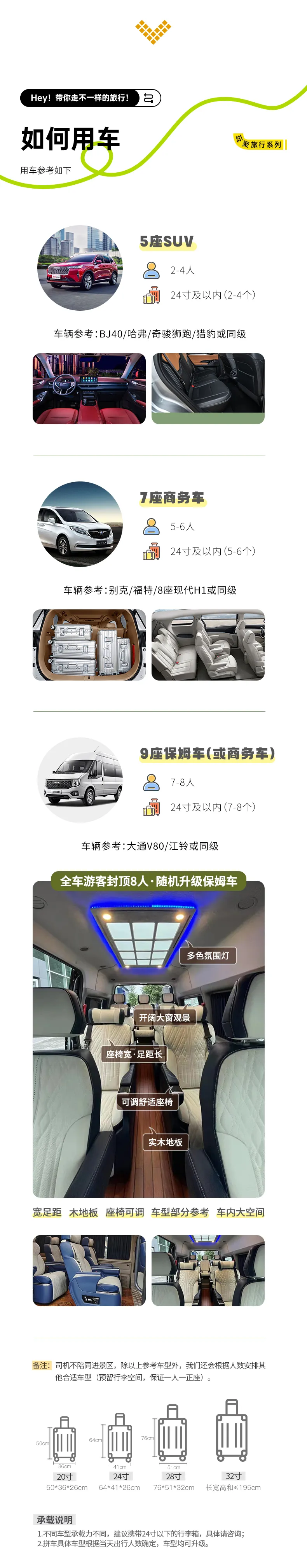 7-8位游客:乘坐9座商務(wù)車(或隨機(jī)升級(jí)9座保姆車)