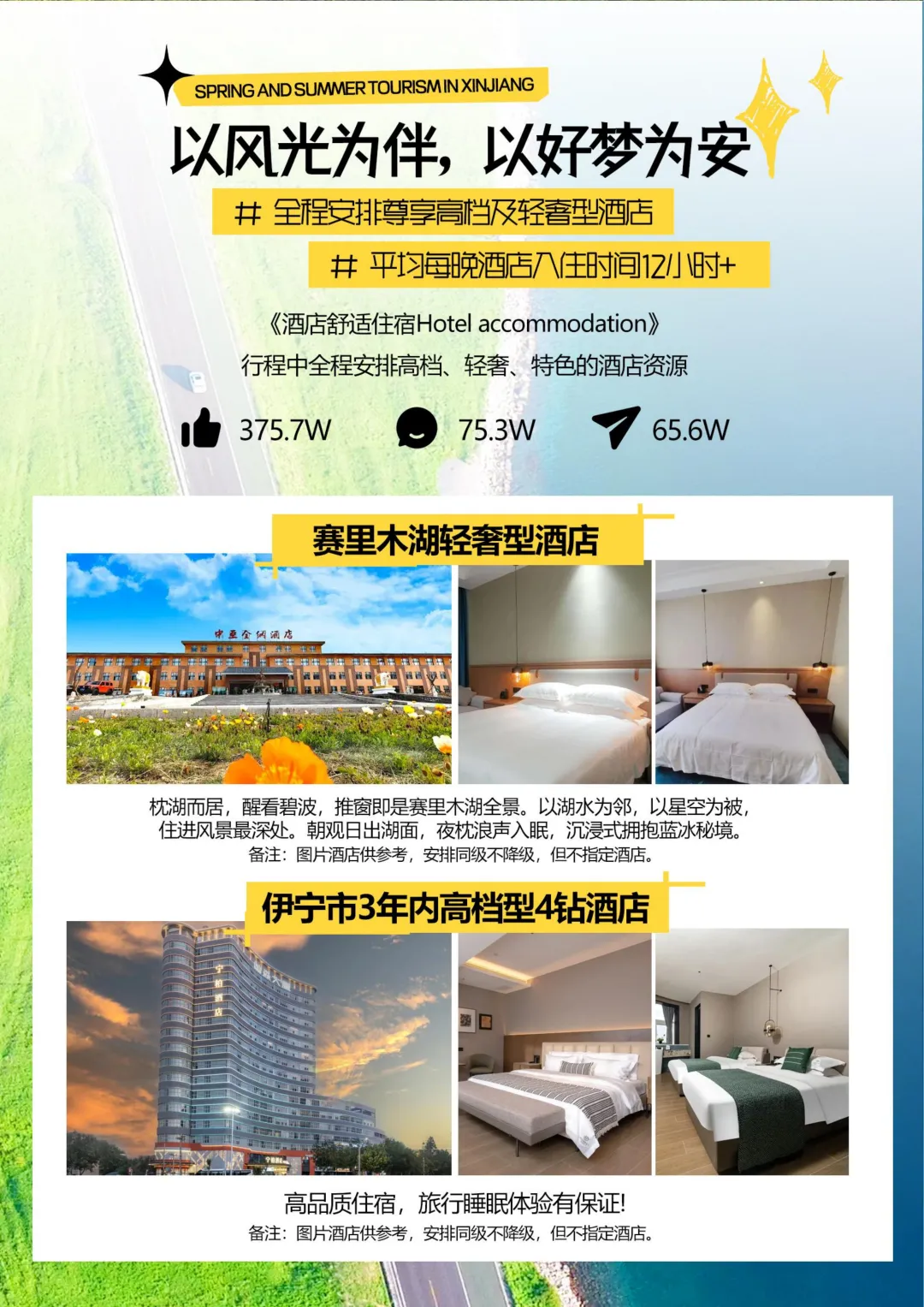 【住宿】全程甄選3晚城市高檔型4鉆酒店+1晚賽湖景區(qū)口輕奢酒店+1晚那拉提輕奢型花園民宿。
