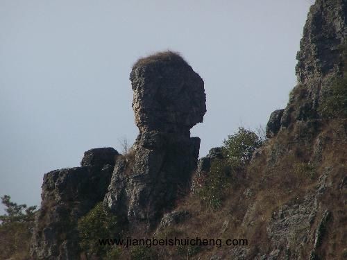 “東南小飛來”從對面的位置望去,為一天然大佛頭像,占稱大日如來,今仙姑娘娘頭佛,頭佛呈吉祥狀,兩側(cè)對稱而生二位侍女,高達(dá)16米,坐西朝東,望那天心。頭像面部表情比例十分協(xié)調(diào),彷佛在念《心經(jīng)》,真可謂天成勝人工。