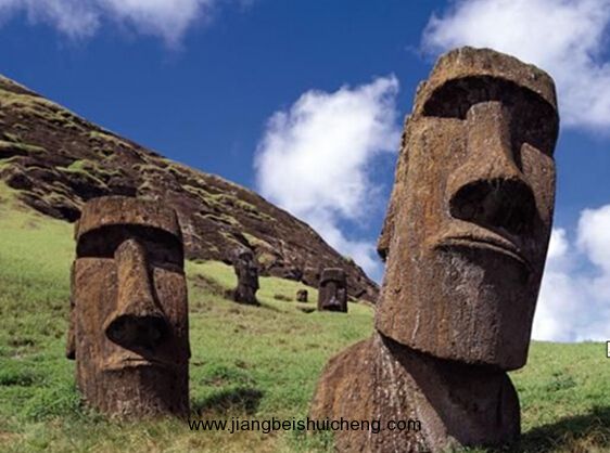 智利的復(fù)活節(jié)島位于太平洋東南部,以神秘巨像名聞遐邇。島上有600多尊面對(duì)大海的古代巨大半身石雕像。19 96年2月,該島被聯(lián)合國教科文組織宣布為世界文化遺產(chǎn)。