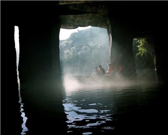 地下長廊(2號洞)此洞在半山腰,洞口呈虎口張開之勢。入洞后隨坡下延,涼氣浸淫,花山謎窟,回望洞口,早已霧氣騰騰。版權(quán)所有,山東聊城聊之旅國際旅行社有限公司,轉(zhuǎn)載必究!洞內(nèi)有幾十根石柱昂然挺立,組成長80米,寬1.5米、高4米的地下長廊。右側(cè)這處有一方形洞口,入內(nèi)方知廊中有廊。其走向相同,但深度更深,足有百米,水呈翡翠綠色。在2號窟里,一幅天然的秋色圖再次讓人贊嘆不已。只見整個畫面均被褐黃色的秋葉渲染:黑色的叢林、山峰、古民居點綴于秋葉叢中,那古民居還能明顯地看出徽派的建筑風格。近處,一條白色的小河從古民居前穿過,這無疑就是位于石窟外山腳下的新安江了。