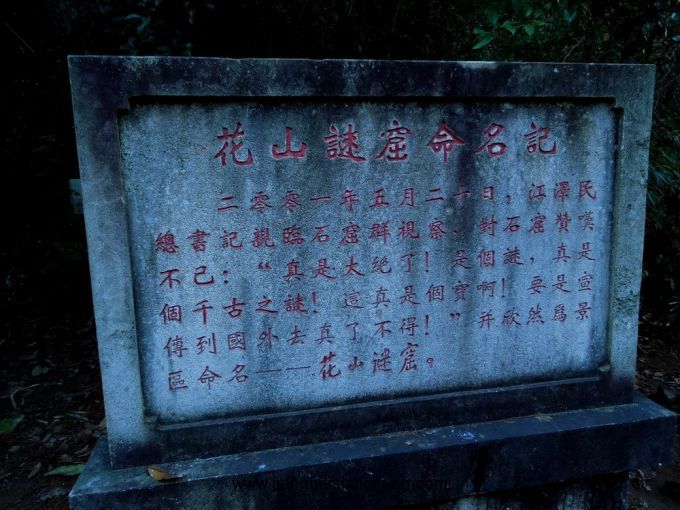 2001年5月20日,江澤民同志來到當時的古徽州石窟群視察后欣然為景區(qū)命名、題詞為“花山謎窟”,并連聲感嘆:“真是太絕了!”“是個千古之謎!”“這真是個大寶貝,要是宣傳到國外去,了不得!”