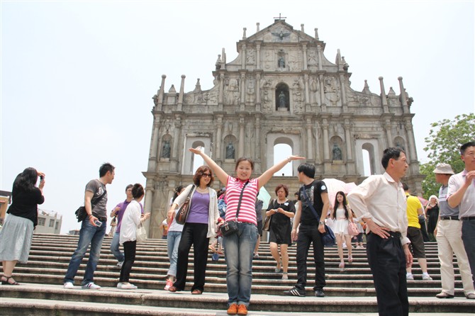 換個地方再看看,這地兒咋樣啊,這可是澳門的一個標志呢,大三巴牌坊
