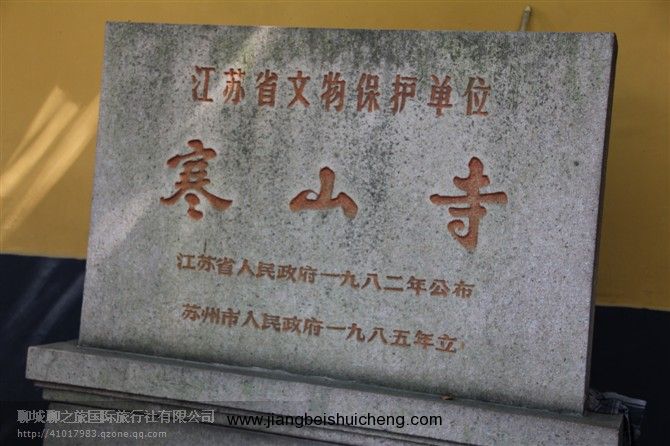 寒山寺(Hanshan Temple) 寒山寺在蘇州城西閶門外5公里外的楓橋鎮(zhèn),建于六朝時期的梁代天監(jiān)年間(公元502-519年),距今已有1400多年。原名“妙利普明塔院”。唐代貞觀年間,傳說當(dāng)時的名僧寒山和拾得曾由天臺山來此住持,改名寒山寺。今天我們的導(dǎo)游就帶大家來到了蘇州,看一下寒山寺。