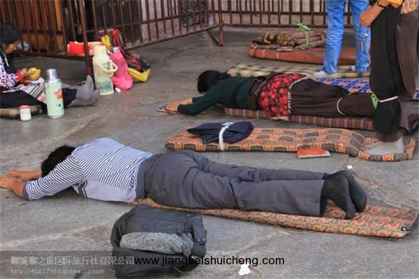 西藏是宗教文化的發(fā)源地,藏傳佛教具有鮮明的不同于其它佛教支派的高原特色,藏民在進(jìn)行朝拜儀式。