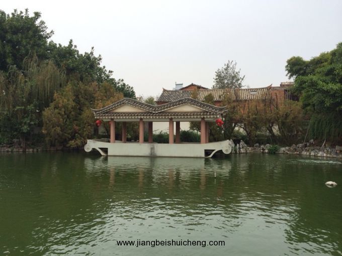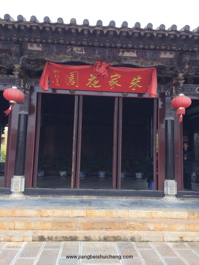 朱家花園坐南朝北,入口為垂花大門。左側(cè)沿街的10間“呆腳樓”與其后的“跑馬轉(zhuǎn)角樓”相連,是當(dāng)年的帳房和資供應(yīng)鋪面等,是朱家經(jīng)營進(jìn)出口貿(mào)易,買賣大錫、洋紗布匹、食鹽、煙土的“朱恒泰”總商號。右側(cè)前為家族祠堂,后為內(nèi)院。祠堂前有水池,水上有戲臺、亭閣、庭蔭花木等。水池邊有右欄。