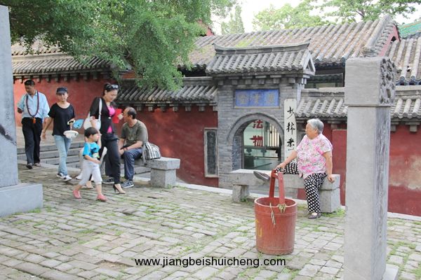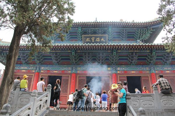 穿過天王殿,其后有大雄寶殿。殿內供奉著釋迦牟尼、阿彌陀佛、藥師佛的神像,屏墻后面懸塑觀音像,兩側有十八羅漢侍立。大雄寶殿之后,又有藏經閣藏書八百萬卷,這是寺僧藏經說法的場所。