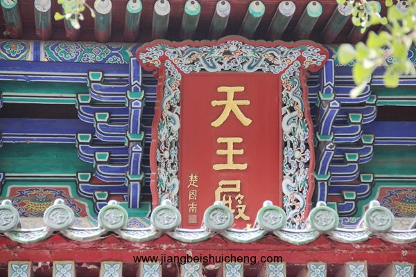 經甬道過碑林后便是天王殿,三間重檐歇山頂殿堂,外面有兩大金剛,內里則是四大天王像,威武雄壯。