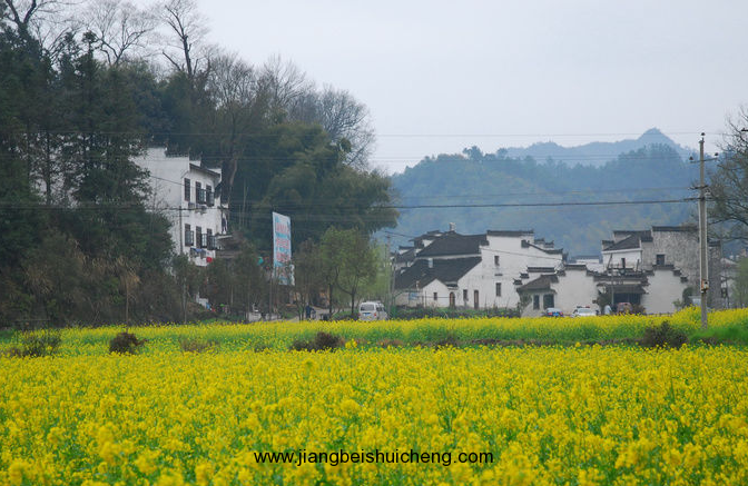 江西婺源的油菜花就是這樣一種意韻。江西婺源被譽為"中國最美的鄉(xiāng)村",婺源最美的季節(jié)是油菜花開放的時候。余邵詩云:“油菜花開滿地黃,叢間蝶舞蜜蜂忙;清風(fēng)吹拂金波涌,飄溢醉人濃郁香”。油菜花成為吸引觀光的最佳綠色資源,花粉中含有豐富的花蜜,常引來彩蝶與蜜蜂飛舞于花間,由此平添了鄉(xiāng)間田園繽紛的景致。三月中下旬,棵棵粉紅的桃花、潔白的梨花點綴在漫山遍野金黃色的油菜花中,掩映著白墻灰瓦的徽派建筑,使得每一個逃離紛繁城市的人都能找到歸宿。
