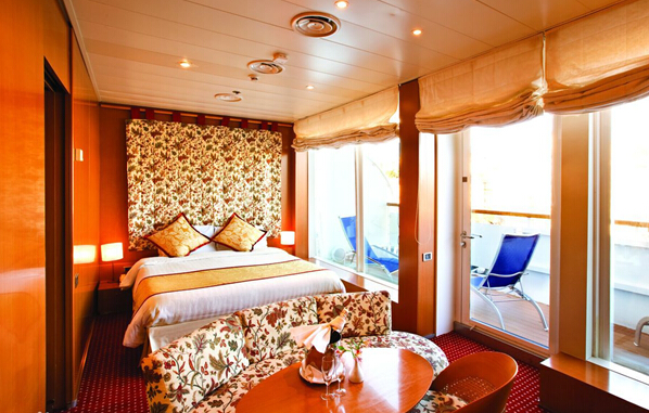 3、船上有一定數(shù)量的單人客艙,其價格扣除了一部分關稅。在某些船上有一定數(shù)量的雙人客艙,如支付差額,可用于單人。您在預定時,請核對可用性與價格。套房特惠除與所有客艙享有相同的服務和特色外,迷你套房和套房中的游客還享有如下特別優(yōu)惠:優(yōu)先登船-仆役服務-每天供應新鮮水果-套房內(nèi)享用午餐和晚餐(應要求)-極可意浴缸-浴衣和拖鞋-應邀參加船長的高級雞尾酒會-可在點菜餐廳優(yōu)先預訂席位-可由仆役服務預約觀光活動(命運女神號與維多利亞號上的迷你套房僅有淋?。?