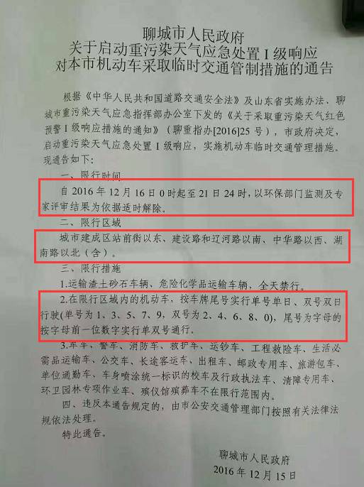 限行時間:自2016年12月16日0時起至21日24時(以環(huán)保部門監(jiān)測及專家評審結(jié)果為依據(jù)適時解除)
